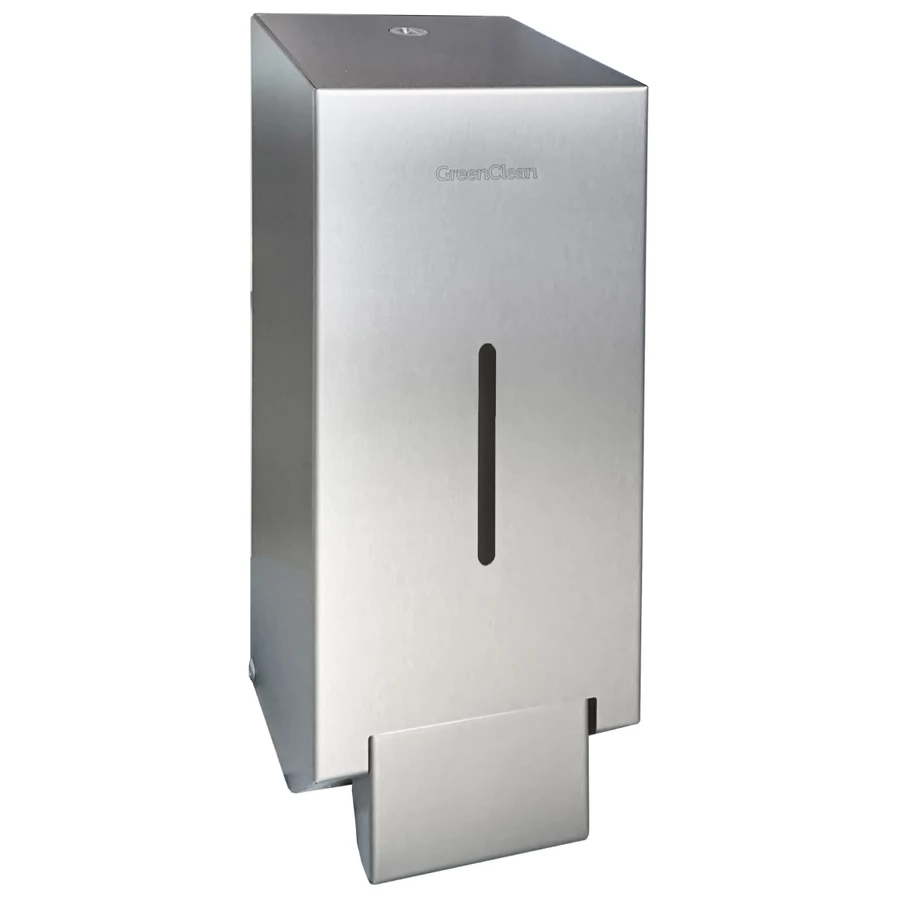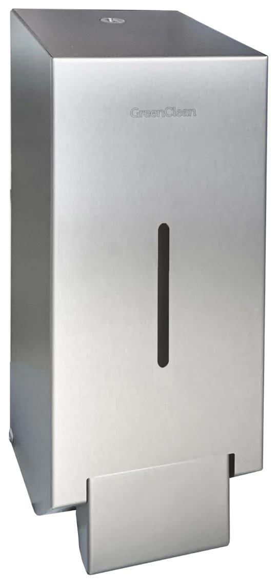 Vandálbiztos nyomógombos habszappan adagoló, zárható, műanyag tartály, r.m. acél, selyem, 1L