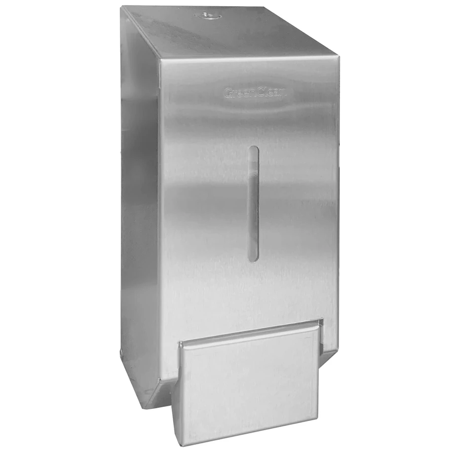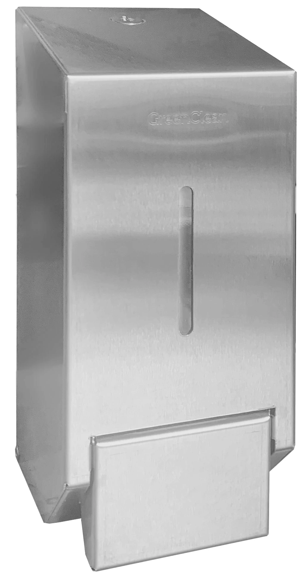 Vandálbiztos folyékonyszappan adagoló, zárható, szögletes házzal, tartályos, r.m. acél, selyem, 1L