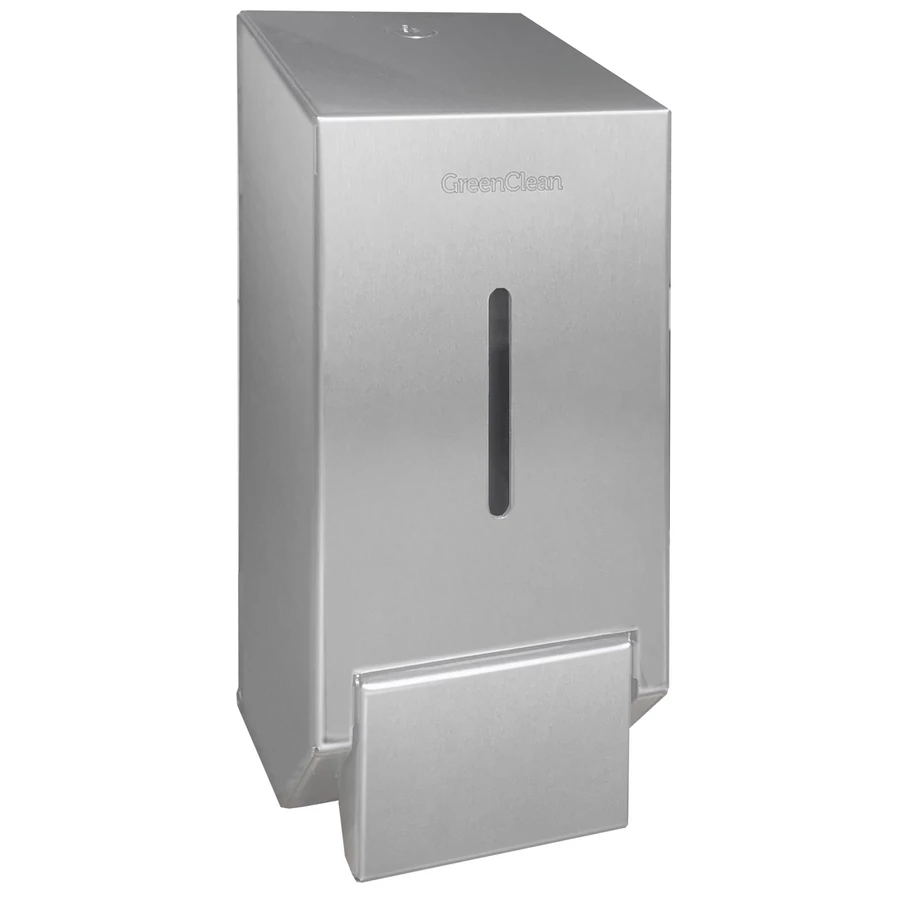 Vandálbiztos folyékonyszappan adagoló, zárható, szögletes, tartályos, r.m. acél, Silk Touch ujjlenyomatmentes, 1L