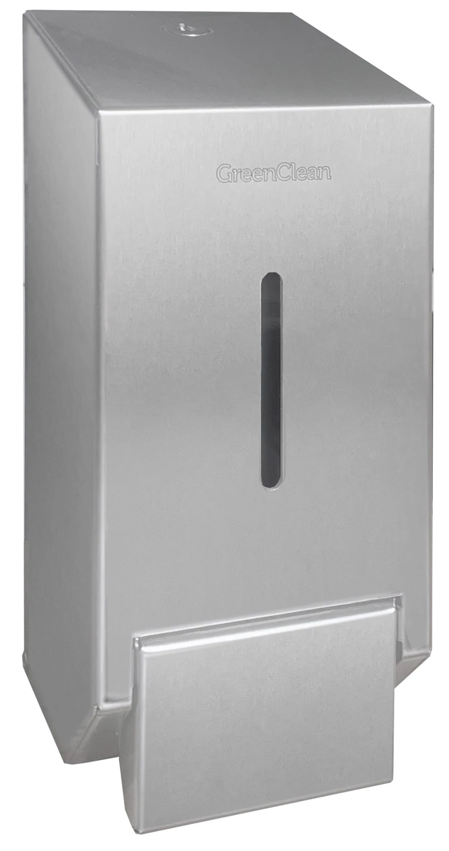 Vandálbiztos nyomógombos habszappan adagoló, zárható, műanyag tartály, r.m. acél, selyem, 1L