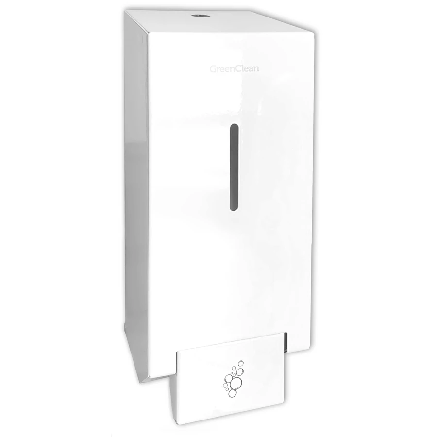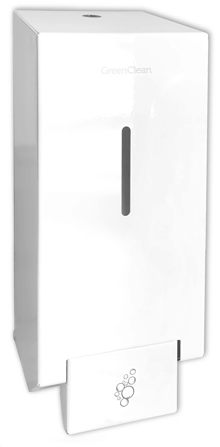 Vandálbiztos folyékony szappan adagoló, zárható, szögletes házzal, tartályos, acél, fehér, 1L