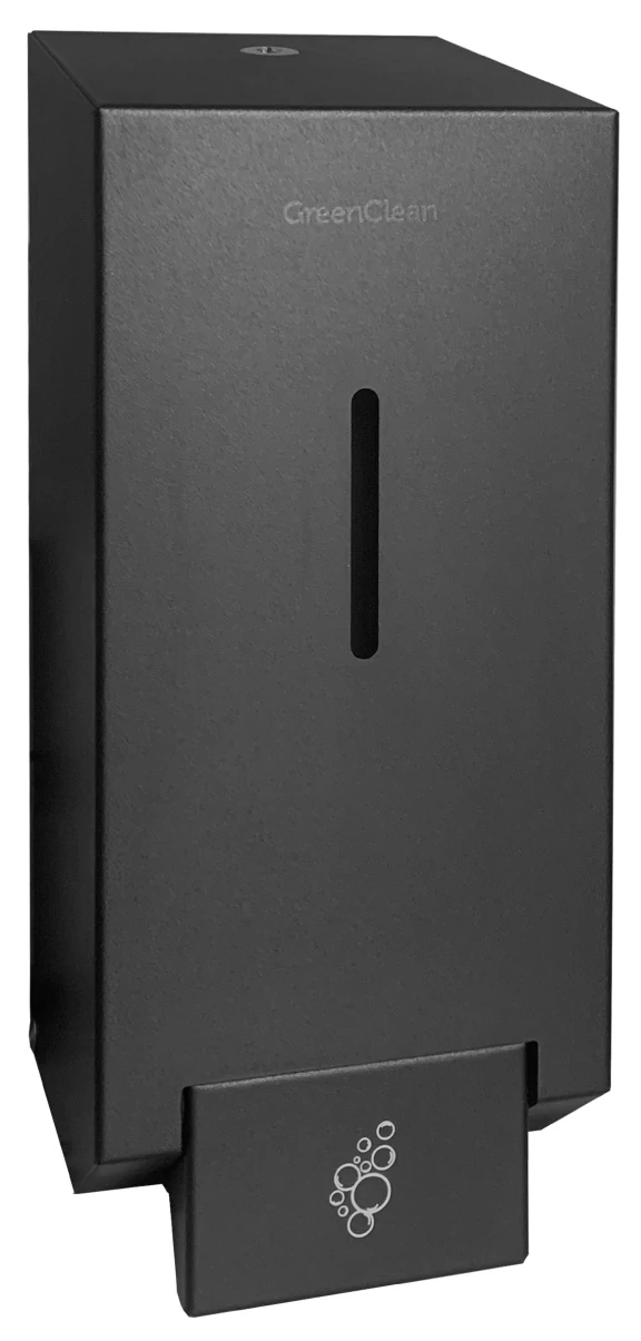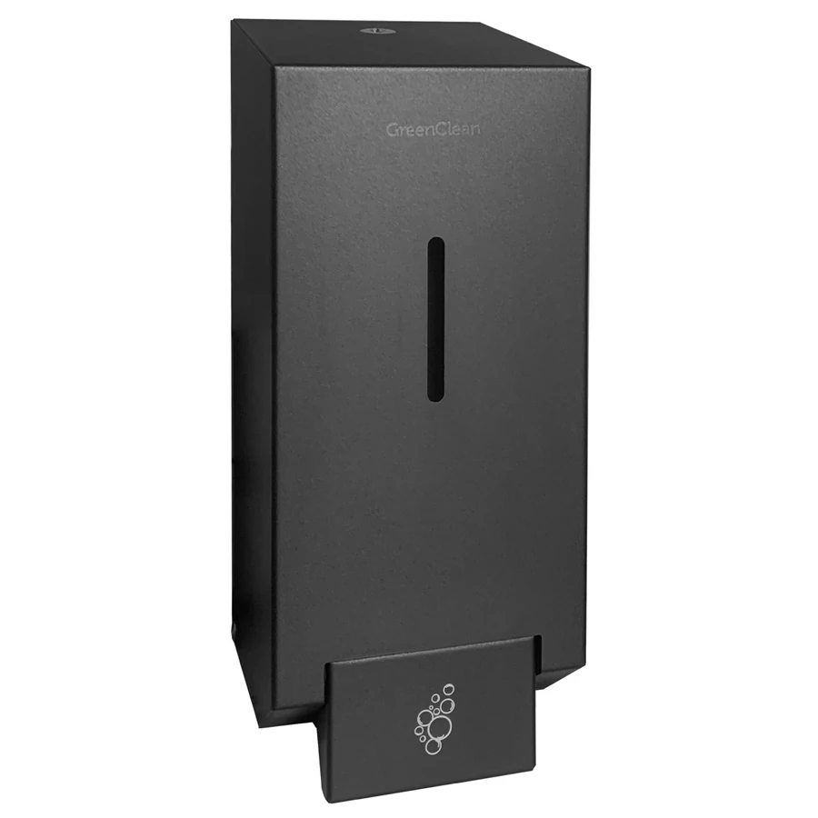 Vandálbiztos folyékony szappan adagoló, zárható, szögletes házzal, tartályos, acél, matt fekete, 1,2L