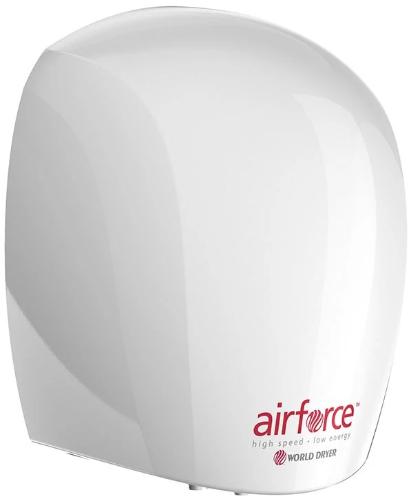 A J48-974 World Dryer AIRFORCE napjaink egyik leggyorsabb kézszárítója. Az új generációs kézszárító technológiájának lényege, hogy a szárítás során a készülék nem elpárologtatja a vizet a kézről, hanem lepergeti azt a levegő erős nyomásával, így a kézszárítás ideje minimálisra csökken. Mindösszesen 12 mp alatt szárít, és alig 1100 W-ot fogyaszt, így üzemeltetése gazdaságos.