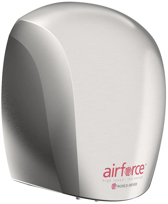 A J48-971 World Dryer AIRFORCE napjaink egyik leggyorsabb kézszárítója. Az új generációs kézszárító technológiájának lényege, hogy a szárítás során a készülék nem elpárologtatja a vizet a kézről, hanem lepergeti azt a levegő erős nyomásával, így a kézszárítás ideje minimálisra csökken. Mindösszesen 12 mp alatt szárít, és alig 1100 W-ot fogyaszt, így üzemeltetése gazdaságos.